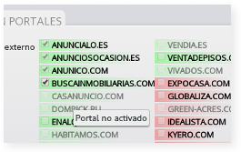 Si has activado la función de publicación automática en portales gratuitos, ya no tienes que molestarte en seleccionar uno a uno los portales a los que quieres exportar cada propiedad. Por defecto, al dar de alta o modificar un inmueble, aparecerán seleccionados todos los portales gratuitos. Por otra parte, para hacerte más fácil la identificación de los portales, hemos marcado en tono verde los gratuitos y en rojo los de pago. Situando el cursor del ratón sobre el nombre de los portales no seleccionables, verás el motivo por el que no puedes marcarlo, esto es, que no haya sido activado previamente o que el tipo de operación o la propiedad sean incompatibles con el portal.