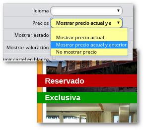 Hemos introducido tres nuevas opciones para que puedas imprimir los carteles con los precios rebajados, los estados de las propiedades ("Vendido", "Alquilado", "Reservado", etc.), así como las valoraciones ("Buena oportunidad", "Inversores", "Rebajado", etc.).