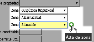 "Alta de zona". Haciendo "click" sobre él podrás añadir una nueva zona dentro de las que hayas seleccionado previamente.