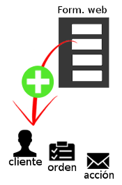 (Consulta) se abrirán dos ventanas simultáneamente, una con el contenido del formulario que rellenó el cliente en tu web y otra con la información de la orden generada, de forma que puedas verificar cómodamente los datos y activar la orden pasándola de estado "Pendiente" a "Activo" o cancelarla.