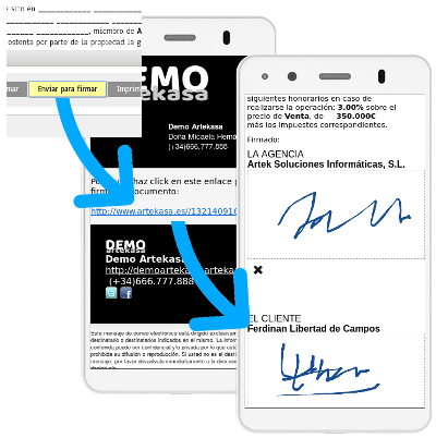 El cliente recibirá el email y, haciendo click sobre el enlace accederá a una página en la que podrá firmar el documento.
