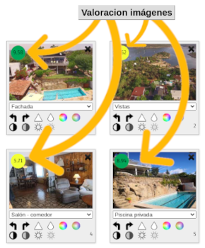 ), pincha en el botón "Valoración Imágenes" para obtener la calificación de las fotos. Verás una puntuación asociada a cada foto indicando con un color su calidad, que podrás utilizar como referencia para reordenarla o excluirla.