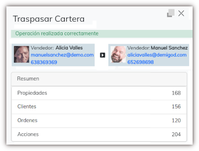 Implementamos una nueva función para reasignar la cartera de propiedades, clientes, órdenes, etc. de un comercial a otro.