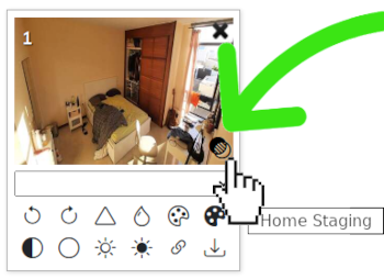 Incluye una imagen alternativa (la de la reforma o redecoración) desde el enlace "Home Staging" que aparece en la esquina inferior derecha en cada foto de la pantalla de gestión de imágenes de una propiedad. Tus clientes podrán visualizar las simulaciones en tu web, desplazando un deslizador para mostrar las simulaciones sobreexpuestas en las fotografías originales de cada estancia.