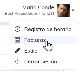Ahora puedes acceder a las facturas de Artekasa desde el enlace "Facturas" en el menú de usuario, en la esquina superior derecha de la pantalla.